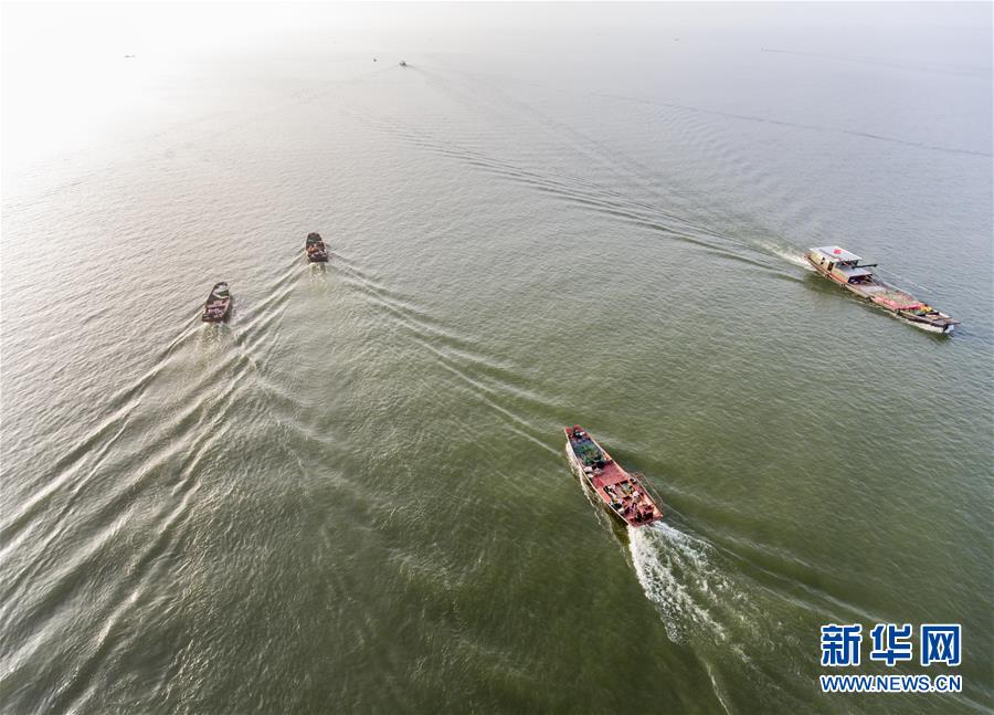 近日,江西鄱阳湖结束春季禁渔,渔民忙着出湖捕捞青虾,湖上一片繁忙景象。新华社发(傅建斌 摄)