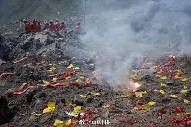 就在大家快绝望时,有人在河边发现很多木料,又重新让他们燃起希望。“表弟家的房子是为数不多的木结构,会不会被冲到了河边?”他们沿着河岸搜索,依然毫无发现。旁边,老人们燃起了香烛纸钱,准备送亲人最后一程。但陈静和他的两个姐姐、表弟的未婚妻并不甘心,他们说,总觉得表弟一家还会回来。图:陈静把王迁昂家仅剩的铁篱笆交给王迁昂的未婚妻。