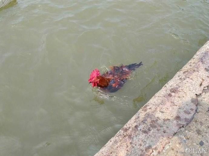 奇事!大公鸡竟然能游泳 陪主人健身引围观
