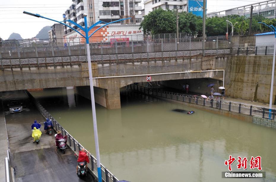 目前降雨仍在继续,未来三天桂北强降雨还将持续。图为桂林市芦笛路下穿通道内涝严重。 中新社记者 赵琳露 摄