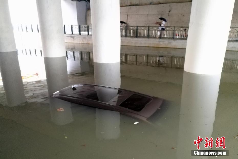 6月26日凌晨,广西桂林市遭遇强降雨袭击,桂林市区多处严重内涝,市民出行受影响。图为桂林芦笛路下穿通道积水约一米,一小轿车被淹。中新社记者赵琳露 摄