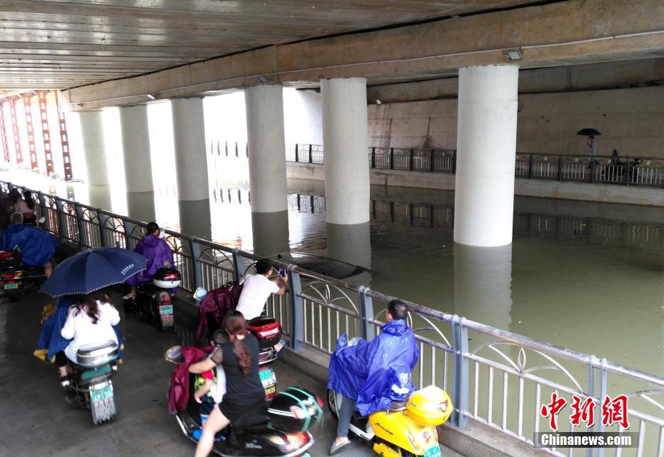 桂林市芦笛路下穿通道积水约一米。 中新社记者 赵琳露 摄
