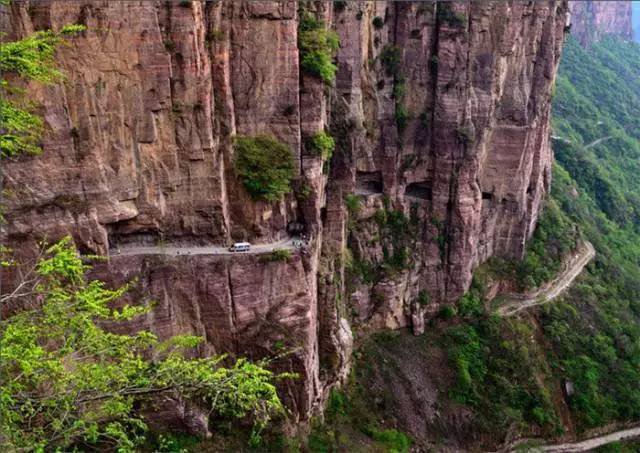 河南省新乡市 郭亮隧道:郭亮隧道是河南省新乡市辉县沙窑乡郭亮村的一条挂壁公路,始建于 1972 年,1977 年完工,全部由郭亮村村民独立手工完成。