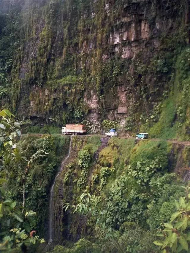 贯通 40 英里山路,最窄的地方只有 10 英尺,1000 英尺的路是垂直冲入下面的热带雨林,而且还没有护栏。