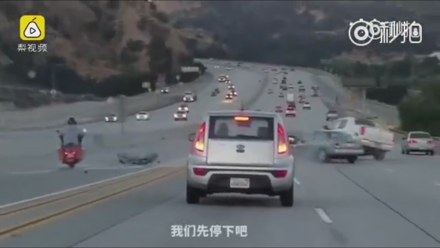 摩托骑士目睹了整件事情发生的过程,但是并未停车查看,估计也是认识到这事跟自己有关系吧。