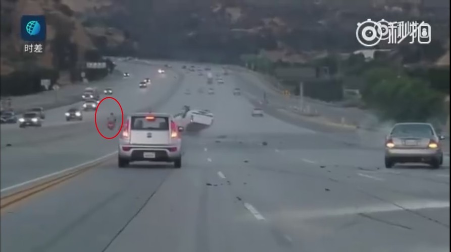 结果轿车直接撞到一辆皮卡上面,或许因为皮卡底盘高,小轿车竟然把轿车顶飞了。