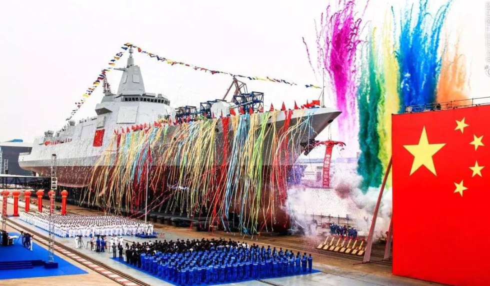 海军新型驱逐舰首舰下水仪式今天上午在上海江南造船(集团)有限责任公司举行。中央军委委员、军委装备发展部部长张又侠出席下水仪式并致辞。上午9时许,仪式开始,随着仪式现场全体人员齐声高唱的国歌声,鲜艳的五星红旗冉冉升起。剪彩后进行了“掷瓶礼”,一瓶香槟酒在舰艏摔碎,绚丽的彩带从两舷喷射而出,新型驱逐舰鸣响汽笛,全场响起热烈掌声。随后,驱逐舰在拖曳牵引下缓缓移上浮箱后下水。该型舰是我国完全自主研制的新型万吨级驱逐舰,先后突破了大型舰艇总体设计、信息集成、总装建造等一系列关键技术,装备有新型防空、反导、反舰、反潜武器,具有较强的信息感知、防空反导和对海打击能力,是海军实现战略转型发展的标志性战舰。该舰下水标志着我国驱逐舰发展迈上了一个新的台阶,对于完善海军装备体系结构、建设强大的现代化海军、实现中国梦强军梦具有重要意义。下一步该舰将按计划开展设备调试、系泊航行试验。