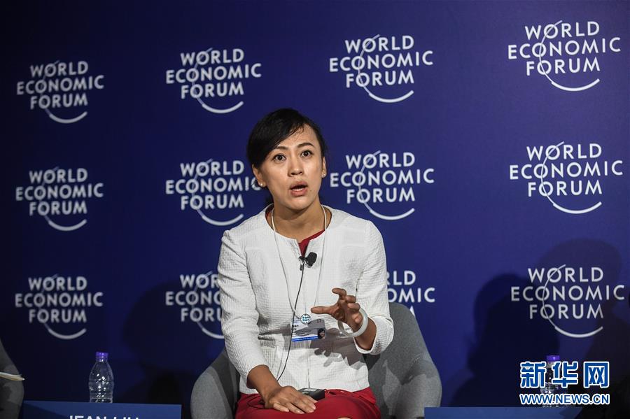 夏季达沃斯论坛联席主席柳青在媒体见面会上发言(6月27日摄)。