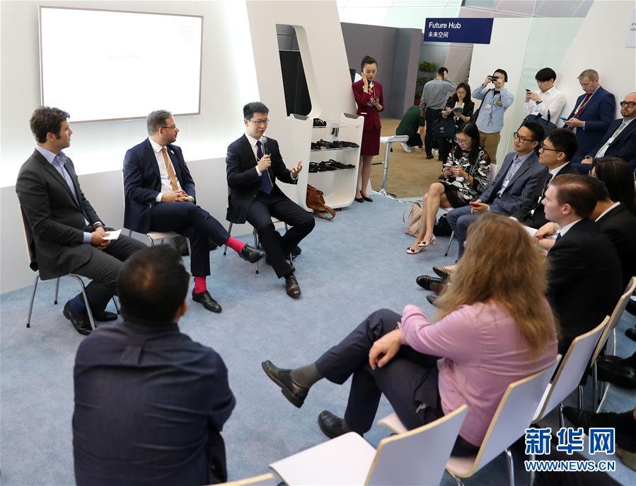 ofo创始人戴威(左三)在2017年夏季达沃斯论坛“共享出行”分论坛上发言(6月27日摄)。