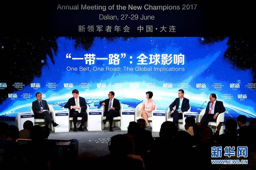 嘉宾在2017年夏季达沃斯论坛“‘一带一路’:全球影响”分论坛发言(6月28日摄)。
