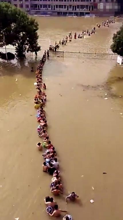 湖南一中学被淹 1300名男生排队涉水转移