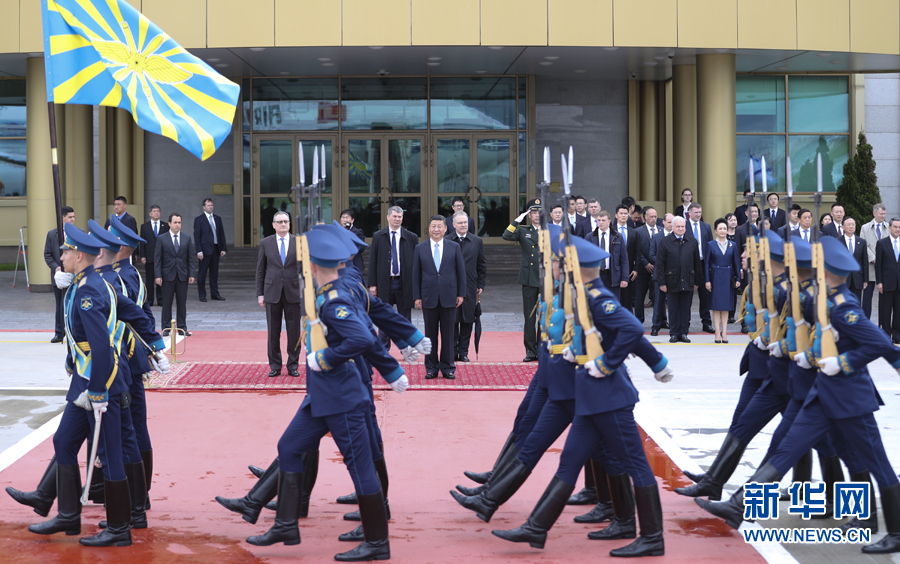 7月3日,国家主席习近平乘专机抵达莫斯科,开始对俄罗斯联邦进行国事访问。这是习近平出席机场欢迎仪式。 新华社记者 李学仁摄