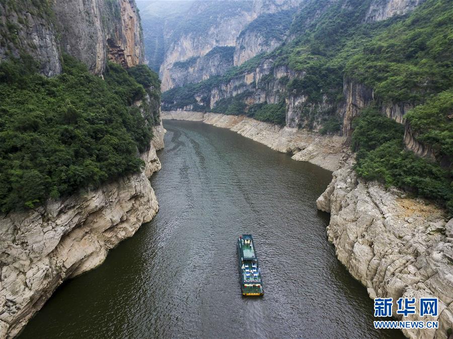 一艘游船在巫山小三峡的巴雾峡内前行(6月29日摄)。新华社记者刘潺 摄