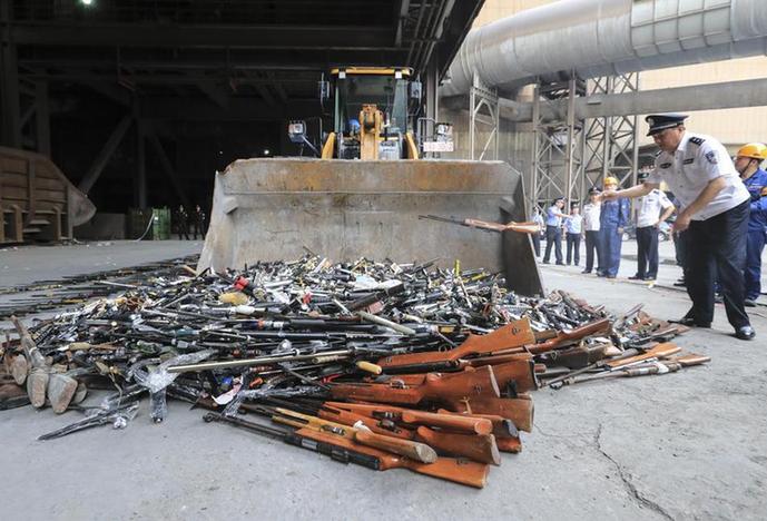 警方销毁非法枪支和管制刀具 挑战想象极限
