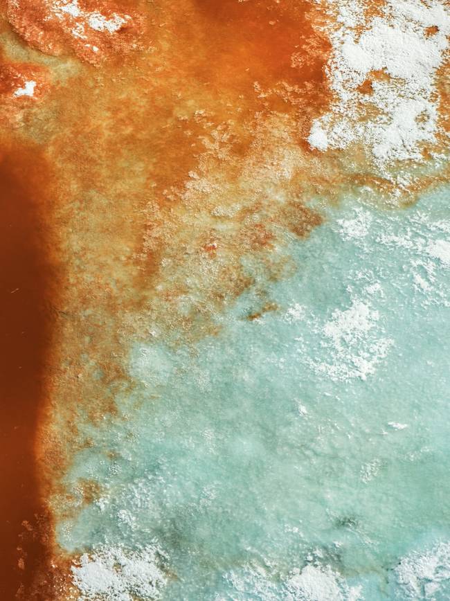 图为红砂岩冰面,拍摄于2015年挪威的Holmstro m yra。红砂岩是指在泥盆纪以及晚古生界和石炭纪期间在各种环境中沉积下来的沉积岩。岩体以冲积沉积物和砾岩为主,见于英国、北欧。