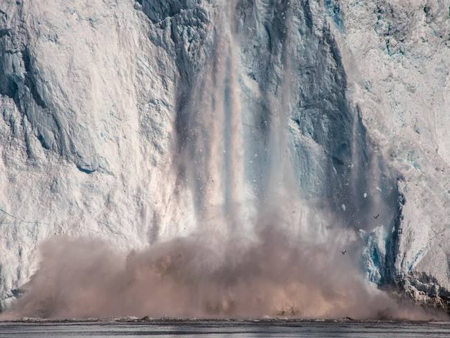 这张照片拍摄于2016年的格陵兰岛。Eqi冰川是格陵兰岛最活跃的冰川之一,游客能够从这里看到冰块从巨大的冰川上坠落。冰川的宽度大约5公里,坐在船上在冰川前漂流、等待大块冰块坠落是一种独特的体验。当冰块坠落时,冰块剥落发出震耳欲聋的声音,随后是落入水面时的巨大水花。科学家表示,2016至2017年的冬季出现不同寻常的温暖,北极出现了三波“极端热浪”,地球极地的气候继续以比其他地区更快的速度发生变化。