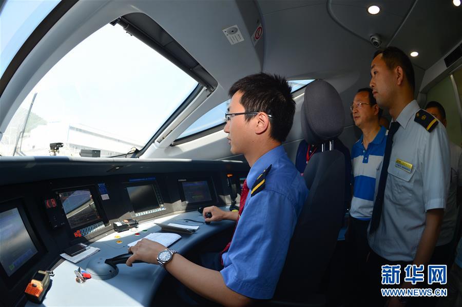 技术人员在宝兰高铁高速综合检测列车司机室作业(5月16日摄)。