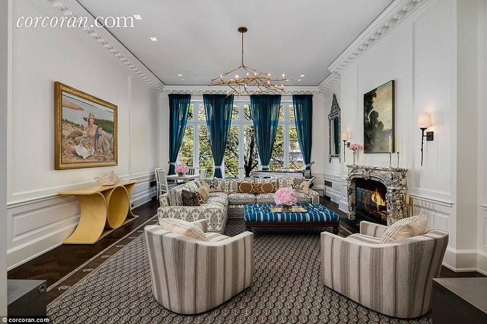 2016年6月,这栋豪宅刚“上市”时要价4250美元(约合人民币2.89亿元)。这间房子的面积达到1.04万平方英尺(约合966平方米)。图为豪宅内其中一间会客室,满满的宫廷风。