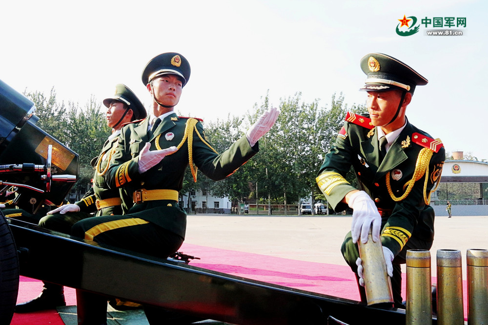 三炮手顺势将礼炮弹送到二炮手手中。 龚松 摄