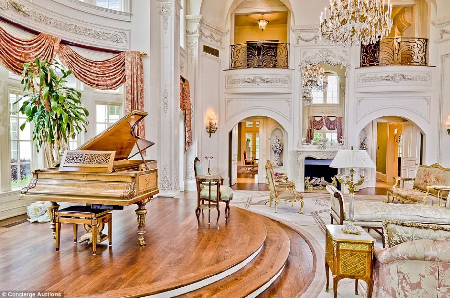 Goldfield开了一家蜂窝移动电话供货公司,赚的盆满钵满,他耗资5200万美元(约合人民币3.54亿元)、历时4年,终于在2002年建成这栋别墅。他建造这栋别墅也是为致敬巴黎郊外的一座17世纪城堡。图为别墅内景。