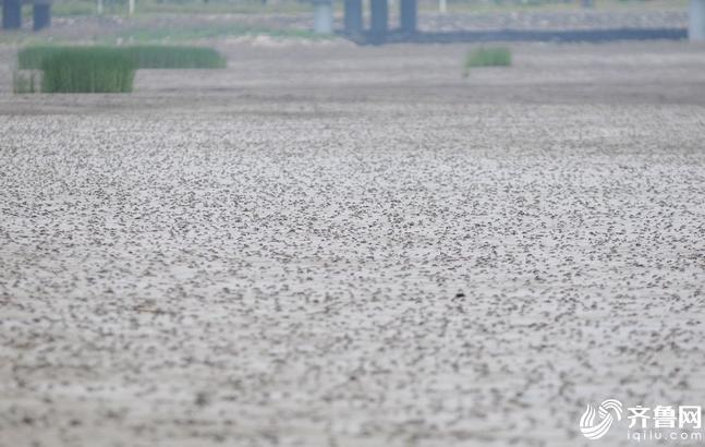 7月7日,青岛市,随着退潮,数以亿万计生活在滩涂上的螃蟹和弹涂鱼走出洞口,在泥水中穿行觅食,由于数量庞大,密集场面蔚为壮观。