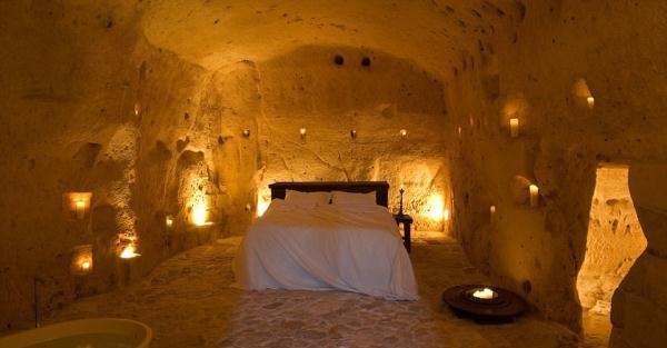 意大利南部的塞克斯·勒格罗特·德拉·奇维塔酒店是联合国教科文组织世界遗产的一部分,这些遗产是18处已经有2500多年人类定居史的洞穴。这些古老的洞穴之前已经被废弃,如今却被费心改造成一家复古酒店——整个改造项目历时10年才完成。