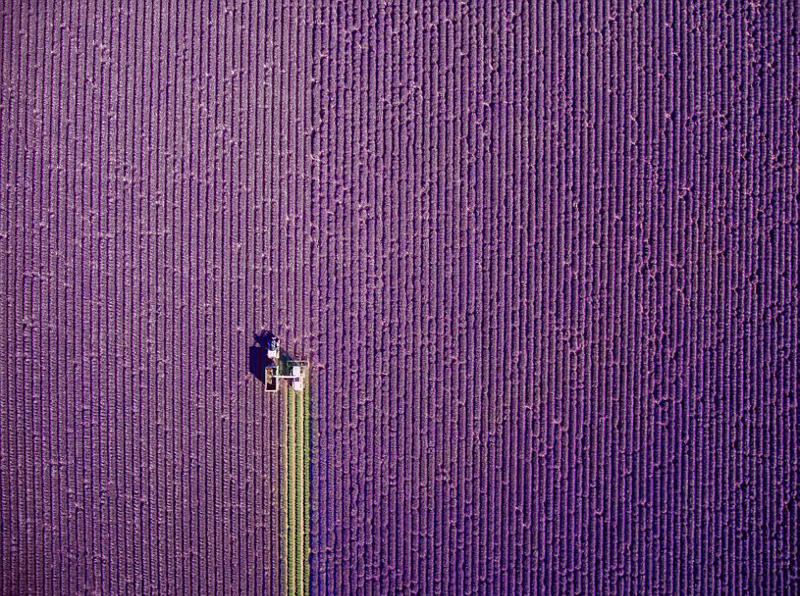 杰罗姆o库斯亚尔(Jerome Courtial)荣获自然组比赛第一名,他的作品拍摄于法国普罗旺斯,记录了薰衣草丰收的场景,颜色绚烂,构图巧妙。