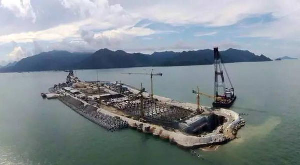 2016年9月27日,港珠澳大桥主体桥梁工程贯通。图为连接隧道和桥梁的人工岛。视觉中国 资料图