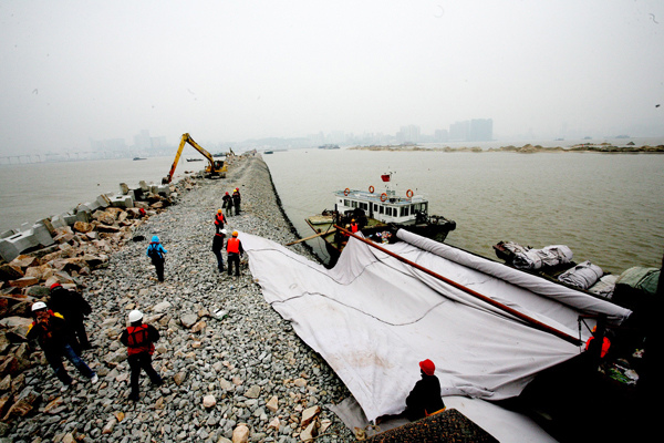 2011年1月,岛隧工程正式动工,至年底完成东、西人工岛岛壁围护工程,实现“当年动工,当年成岛”的目标。新华社资料图
