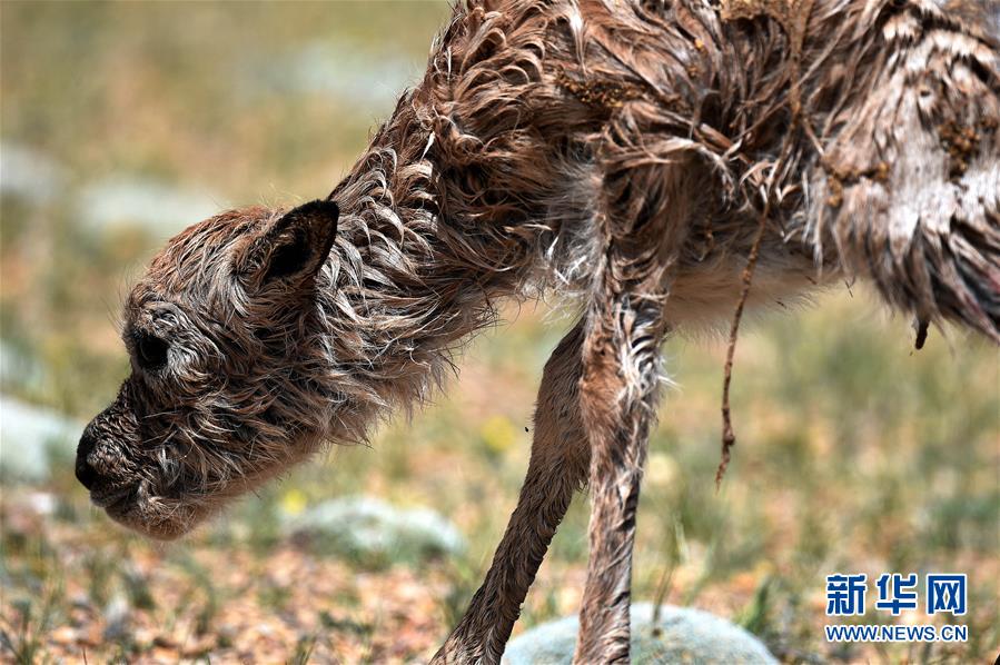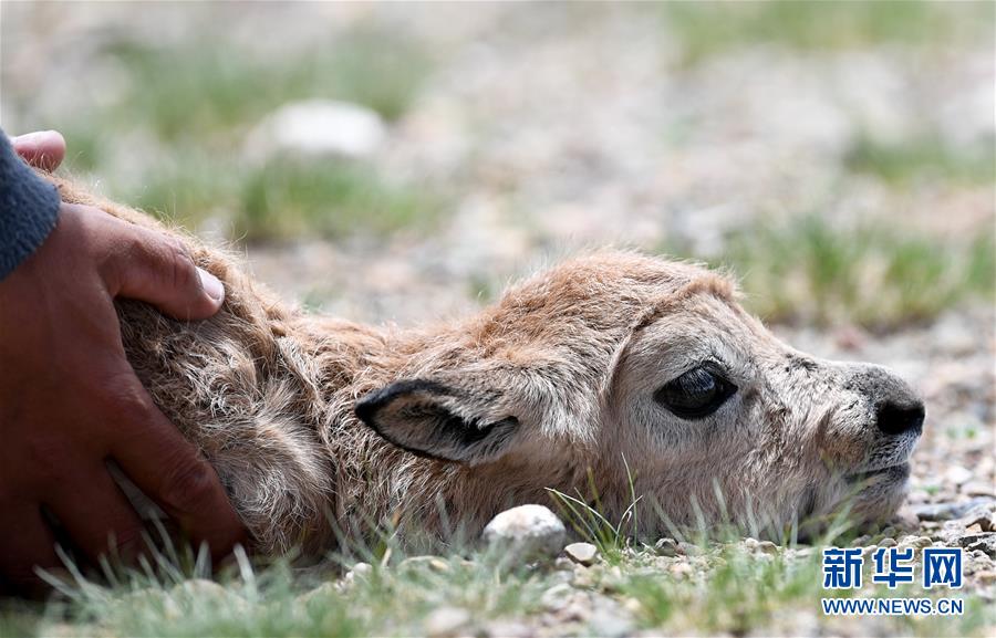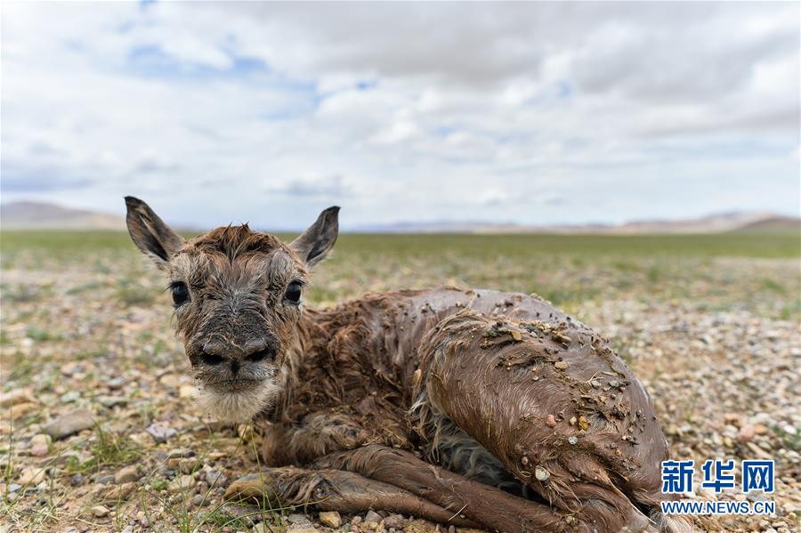这是在羌塘国家级自然保护区内拍摄的一只刚出生不久的小藏羚羊(6月24日摄)。新华社记者 普布扎西 摄