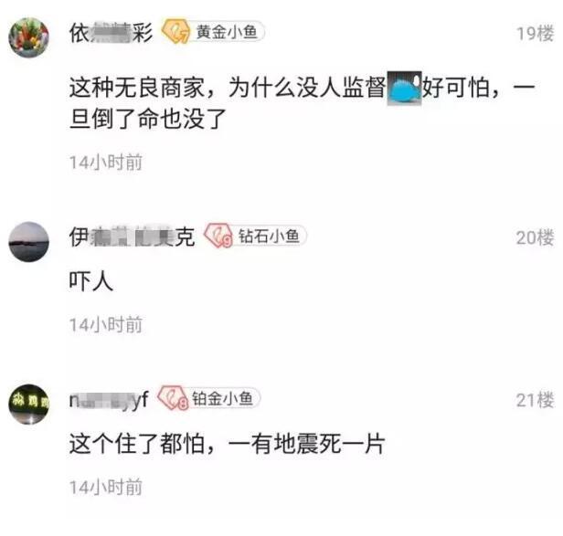 然而,业主并不买账,辛苦买的房转眼成危房,全家人生命受到严重威胁,无法接受这个解决方法。图为网友评论。