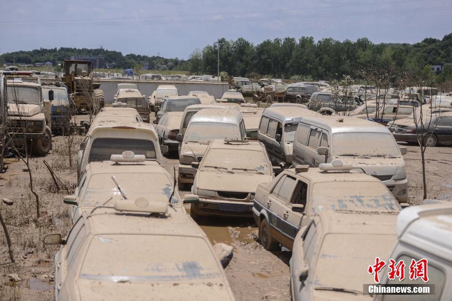 长沙洪水退去 航拍被淹停车场如灾难大片