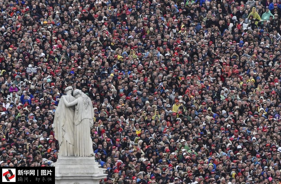 当地时间2017年1月20日,美国华盛顿,美国民众观看特朗普的总统就职典礼。