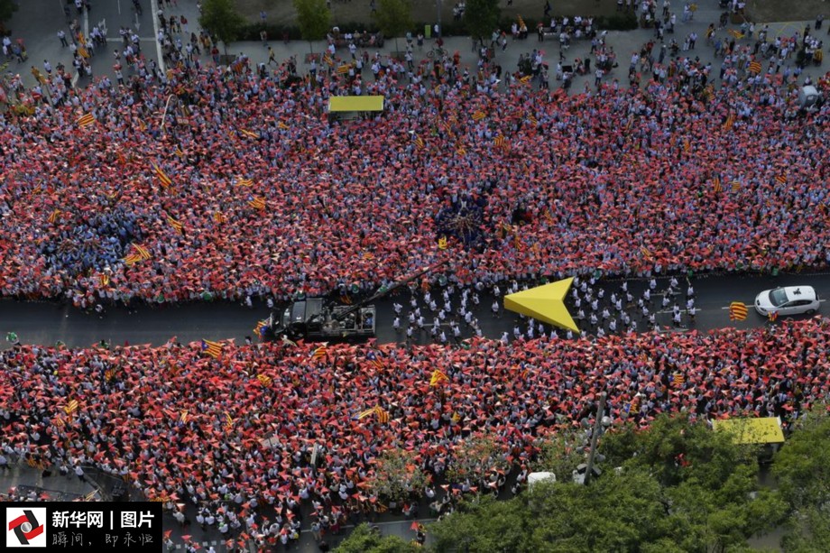 当地时间2015年9月11日,西班牙巴塞罗那,加泰罗尼亚国庆日(又称为Diada Day)当天,民众举行大规模集会,支持加泰罗尼亚独立,人山人海场面壮观。
