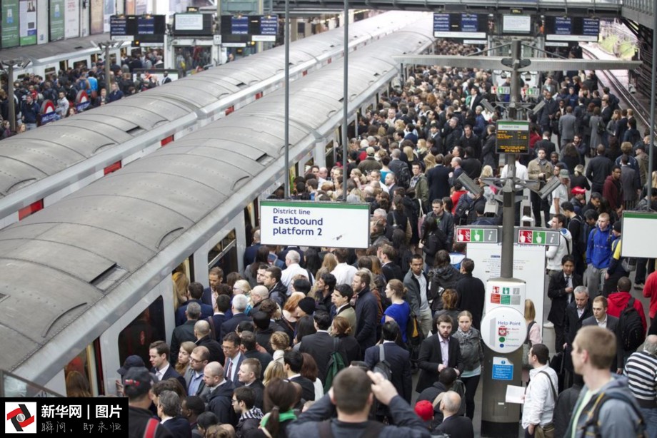 当地时间2014年4月29日,英国伦敦,伦敦地铁工人举行48小时罢工,大批民众挤地铁。