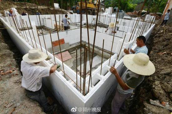 新鲜事!农民用泡沫盖别墅 建造过程犹如搭积木