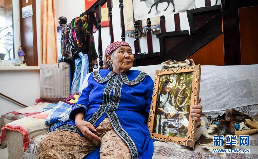 7月11日,敖鲁古雅鄂温克族猎民安塔布在家中展示自己年轻时候的一张照片。