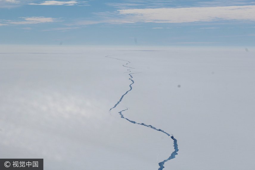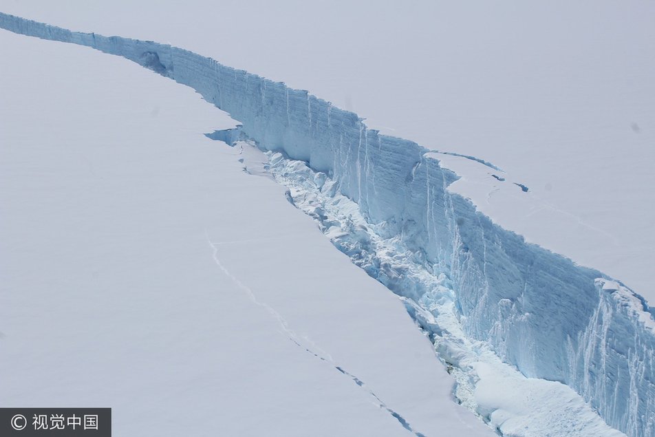 2017年7月13日讯,南极洲冰架破裂形成面积约有四分之一威尔士的冰山。这一严重后果可能使整个冰架迅速崩裂,造成海平面上升。