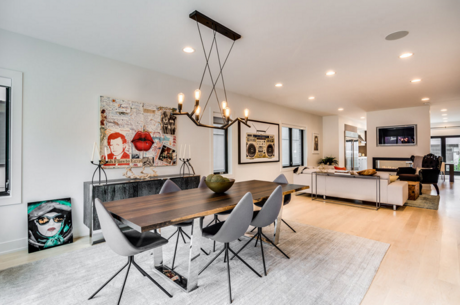 这栋房屋有白色的橡木地板和家庭自动化系统。房子前段的餐厅连通客厅。