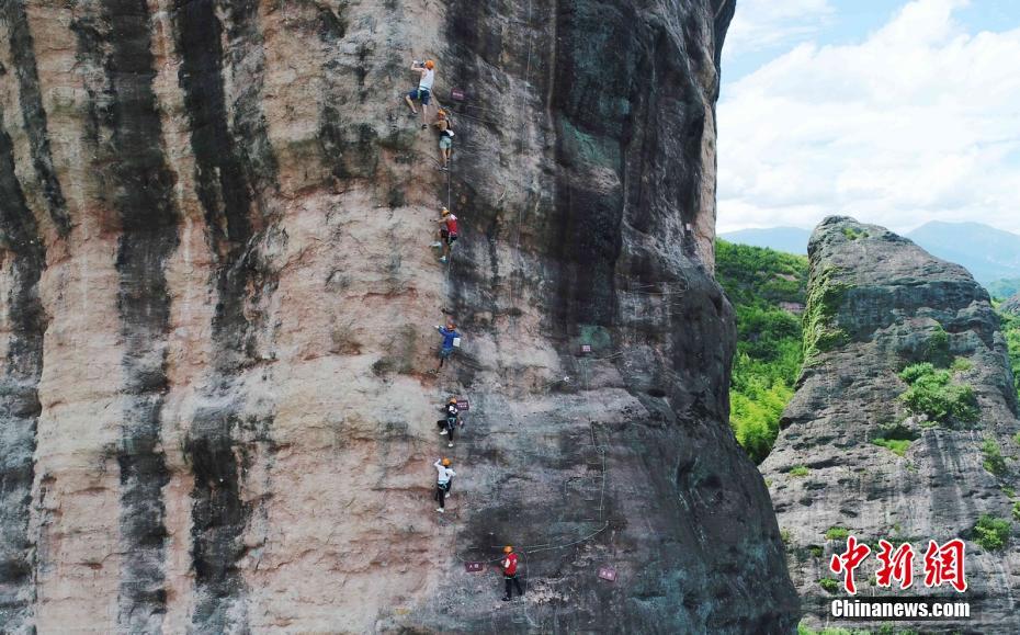 选手们在悬崖峭壁上攀爬。杨华峰 摄