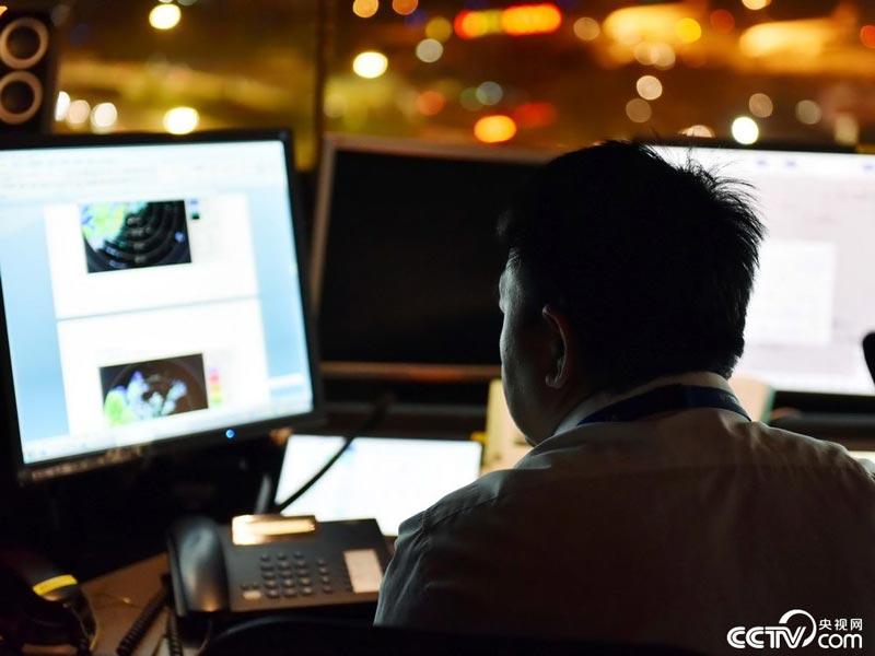 “北京,CDG4855,由于天气,终止进近,现在需要立即右转航向090!”“CDG4855,北京进近,航向090同意,上升到2100米保持。”7月13日晚,由于首都机场雷电交加,大风和冰雹的侵袭,已经在航道上进近的飞机纷纷选择了终止进近。一时间,华北空管局的管制频率骤然紧张了起来。管制员们不断向后续机组报告天气情况,询问复飞机组意图,平稳有序的发布每一条指令,指挥飞机绕飞雷雨,保障每一架航班在雷雨夜平安飞行。(摄影周越)