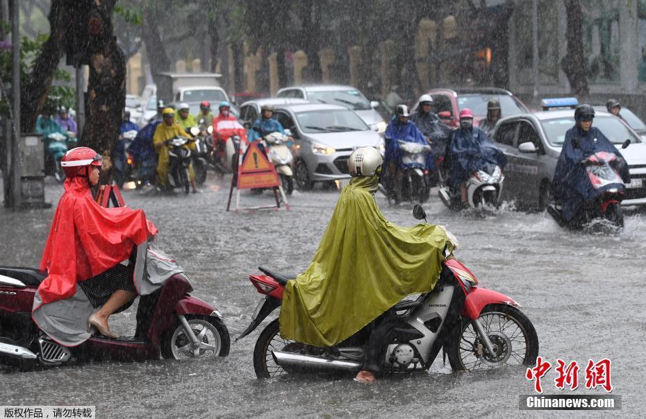 台风“塔拉斯”登陆越南 首都河内街头积水严重