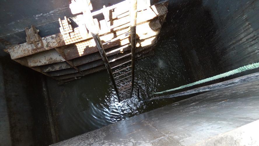 顺着阳光往下望去,紧闭的闸门外形成了一个污水池,上面漂浮着各种垃圾,散发出一股类似臭鸡蛋的味道,而这正是姜桂章要潜入的地方。顺着扶梯,姜桂章几乎是一步一停地往下挪,大约2分钟后,潜水帽彻底被污水淹没。