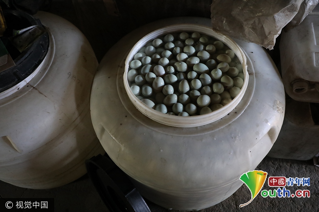 这一桶盐水腌的鸭蛋足足3500个,是雨季中2000只鸭子两天的产量。鞠淑珍说,蛋鸭的产蛋旺季是春天到初夏,进入雨季产蛋量会下降,10月中旬基本停窝到来年的3月份才能继续产蛋。“一只鸭子一年能产200多个蛋,一年下来2000只鸭子就是40万个鸭蛋。”