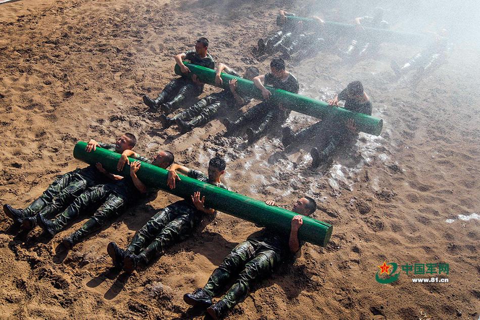 支队利用水罐车向正在训练的官兵喷水施压,虽然训练难度增加一倍,但天然的“中央空调”也让官兵们“因祸得福”,在艰苦环境和复杂条件下挑战体能极限、技能顶点和心理底线。图为官兵们正在依托圆木进行仰卧起坐训练。张小军摄影报道