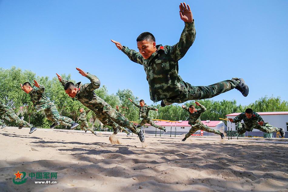 官兵们进行倒功训练,毫不畏惧地扑向50℃的地面。