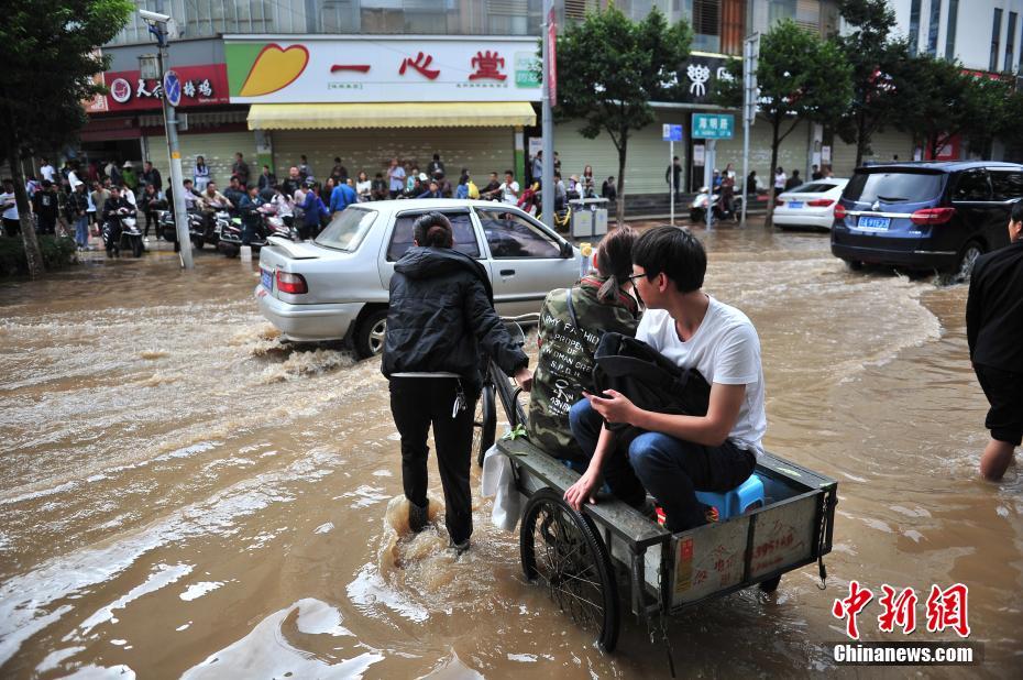 昆明普降暴雨 市区一夜变泽国