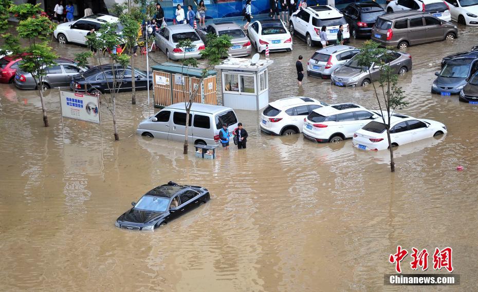 昆明一停车场发生积水,众多车辆被淹。中新社记者 刘冉阳摄