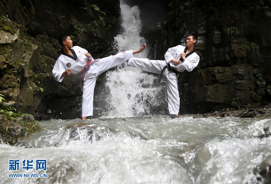 三伏时节,暑热滔天。 外出居家,动静怡然。 上山下海,愉悦度假。呼朋引伴,嗨翻一“夏”。 7月20日,跆拳道爱好者在重庆市黔江区沙坝乡万庆峡谷瀑布前练跆拳道。 新华社发(杨敏 摄)
