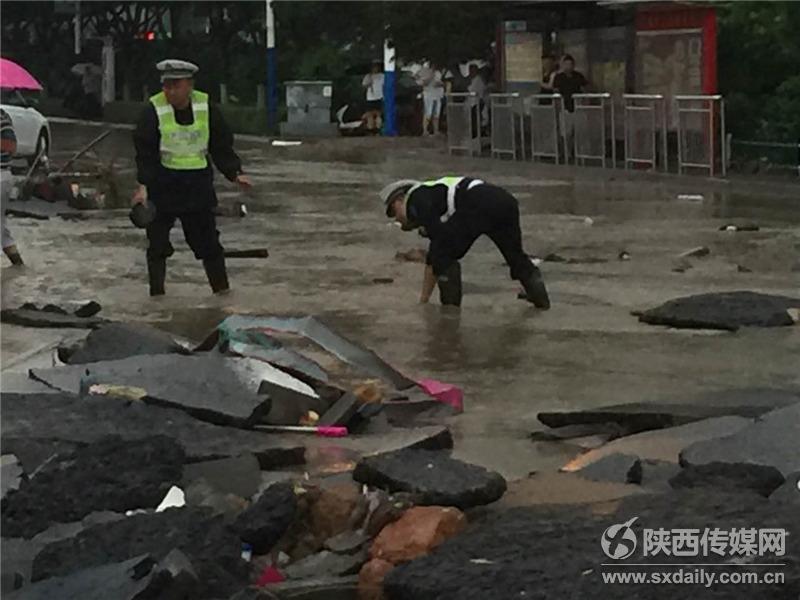 榆林城区突降暴雨 路段被冲毁多处现内涝
